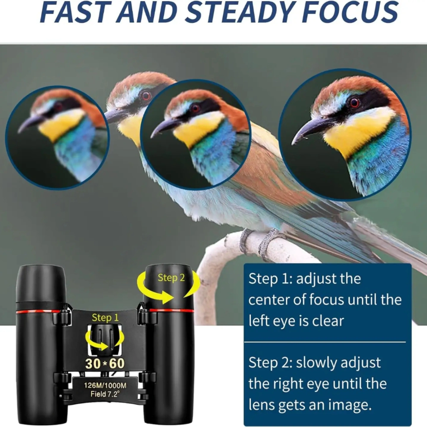 Fast & Precise Focusing: Central focusing wheel + diopter adjustment on right eyepiece for fine tuning clarity.