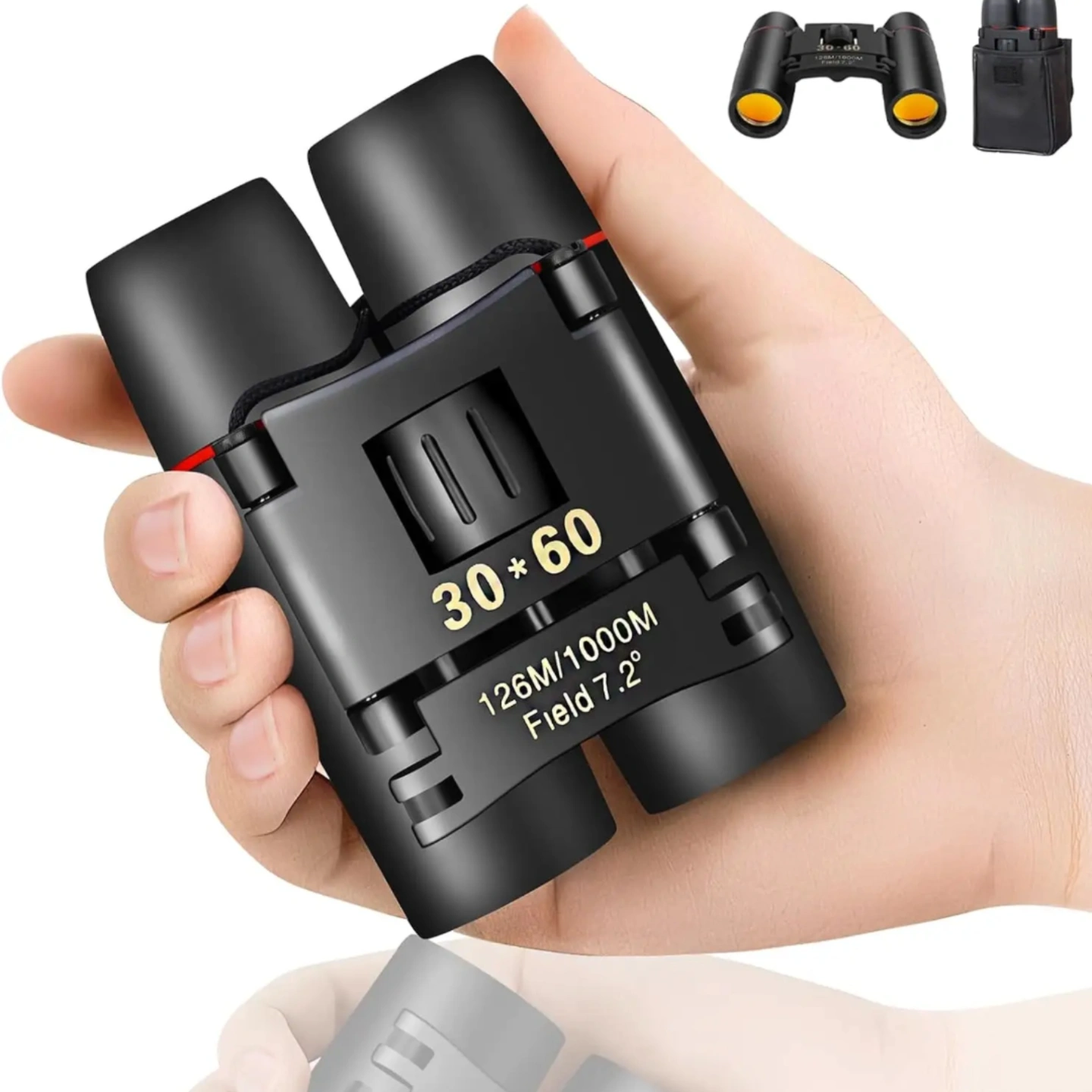 Explore the wild or enjoy distant sights with this ultra-compact, powerful 30×60 folding binoculars — your perfect companion for outdoor adventures. Designed for portability and convenience, it folds to palm size (≈ 9 cm height, 5.5 cm width) and weighs just ~165 g, yet delivers a crisp, far-reaching view with a 30× magnification and 60 mm objective lens.