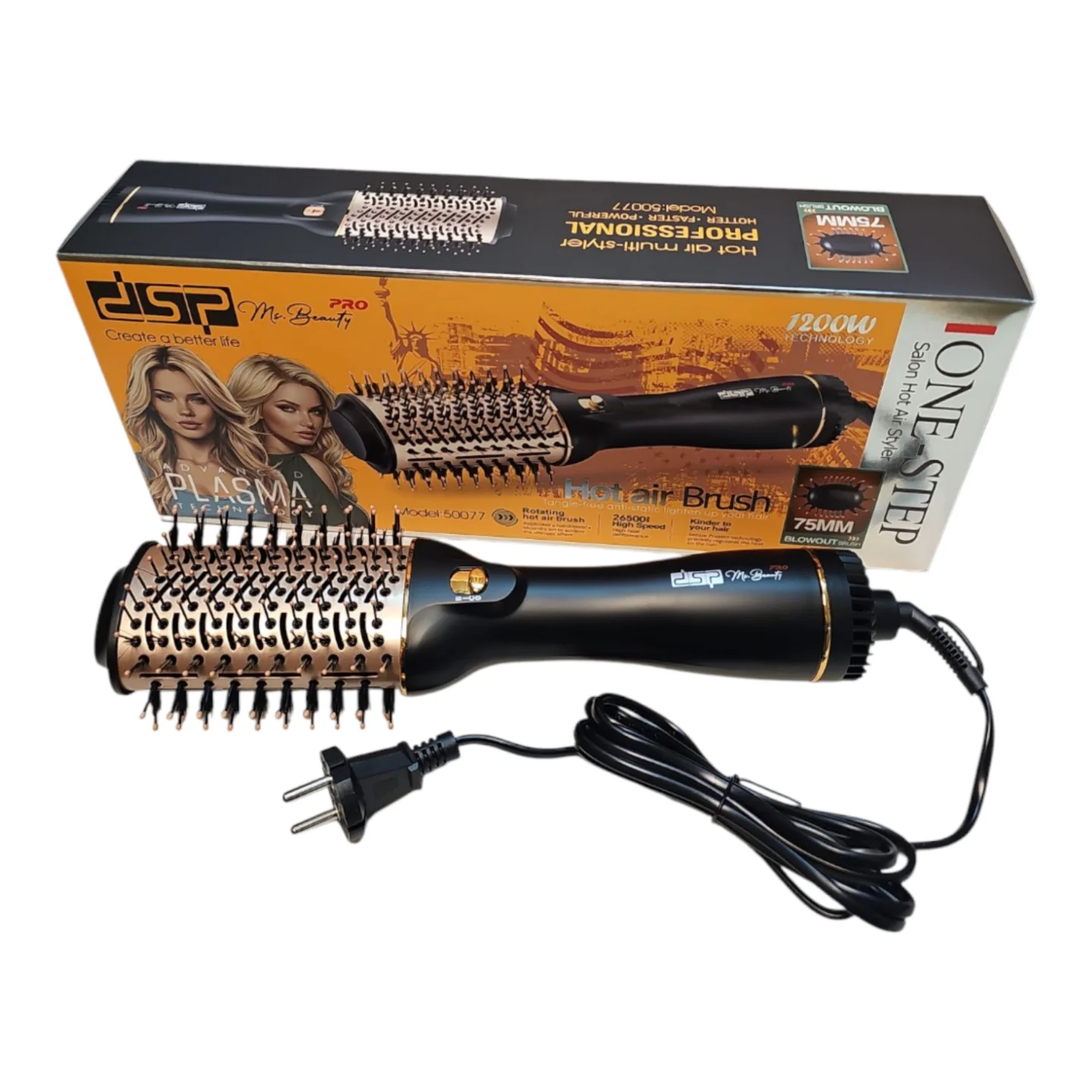 Get salon-quality hair styling at home with the DSP 1200W One-Step Salon Hot Air Brush Styler. Featuring advanced plasma technology for frizz-free, anti-static results, this 75MM blowout brush combines drying, straightening, curling, and volumizing in one easy-to-use tool. The rotating hot air brush replicates a professional blow-dry effect, offering high-speed 26,500 RPM performance and even heat distribution that’s gentle on your hair. Perfect for achieving voluminous, smooth, and shiny hair in less time.