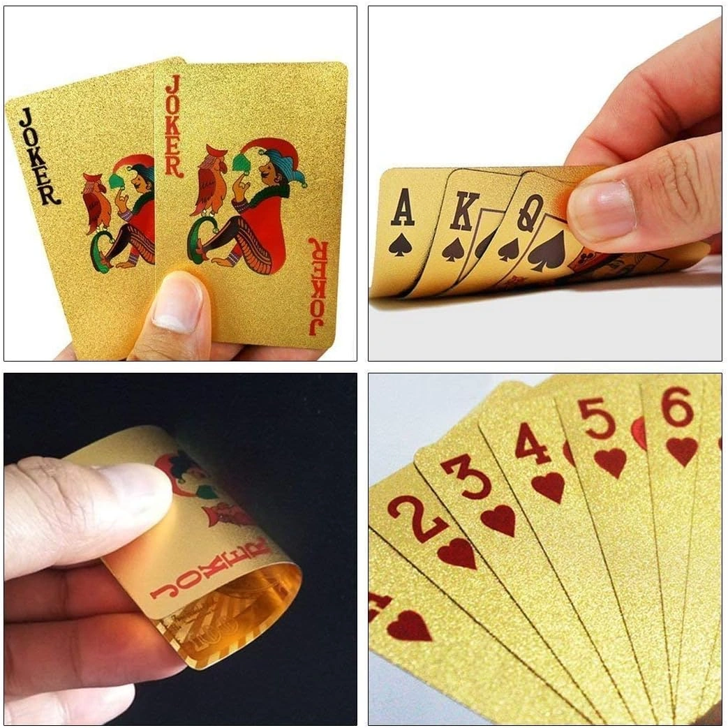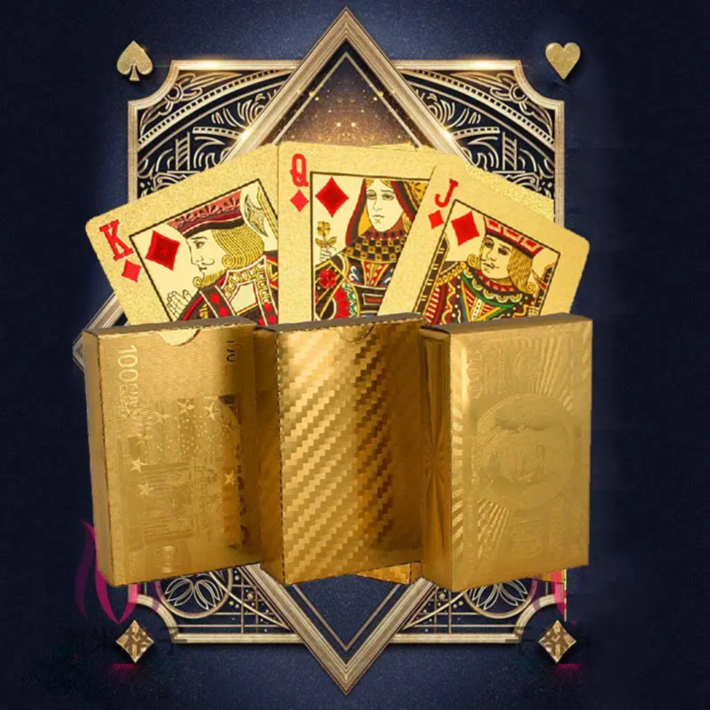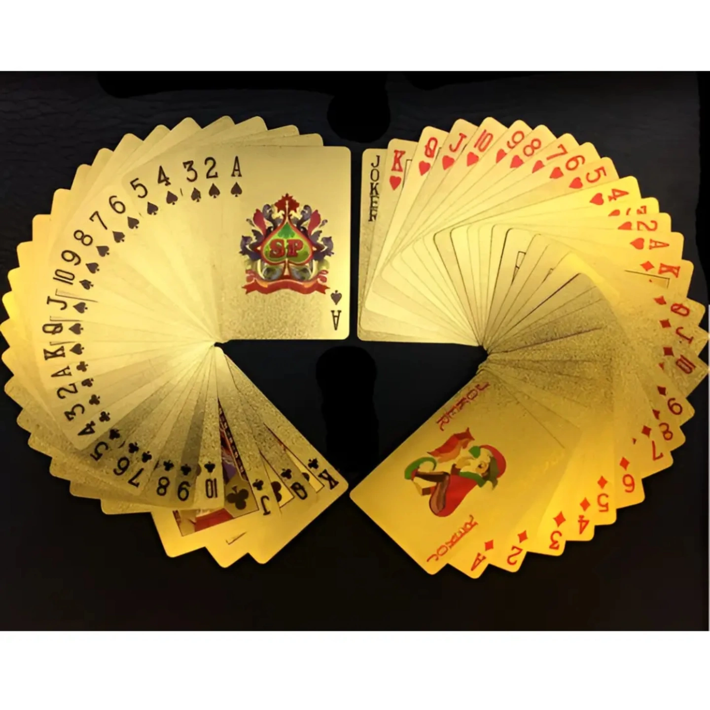 Bring luxury and style to your game nights with the 24K Gold Foil Waterproof Playing Cards. Made with premium-quality plastic and gold foil plating, these cards are durable, flexible, and fully waterproof, ensuring long-lasting shine and smooth handling. Each card features a stunning dollar-pattern design, making it a standout gift for poker lovers, collectors, and friends. Perfect for poker nights, parties, or as a unique decorative piece.