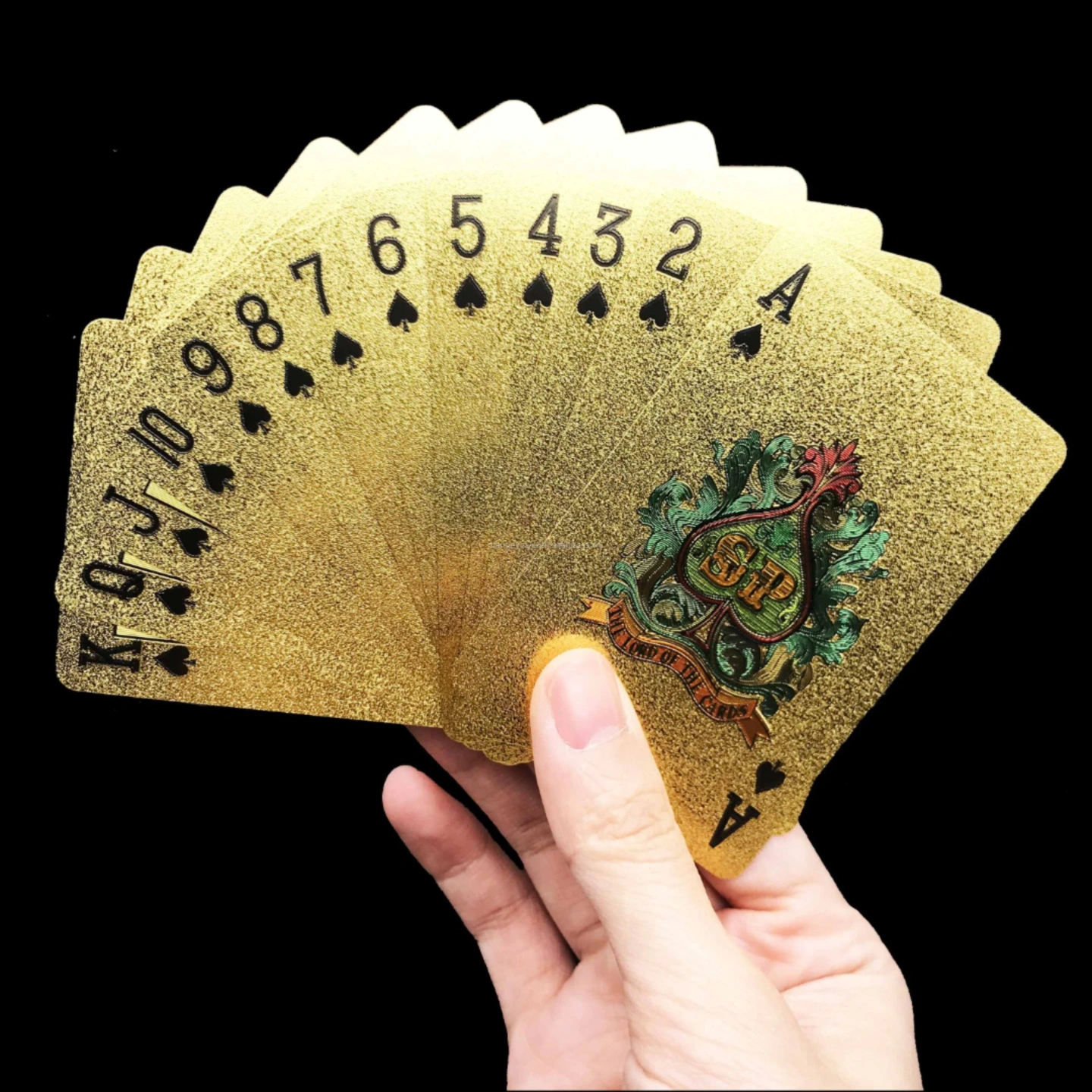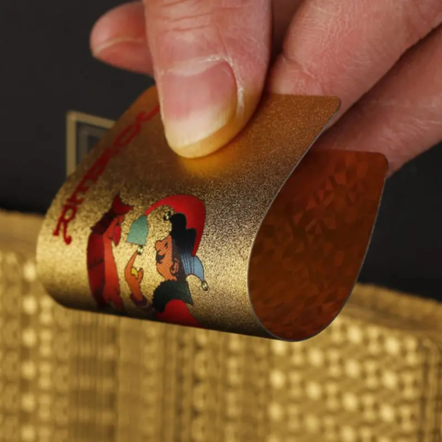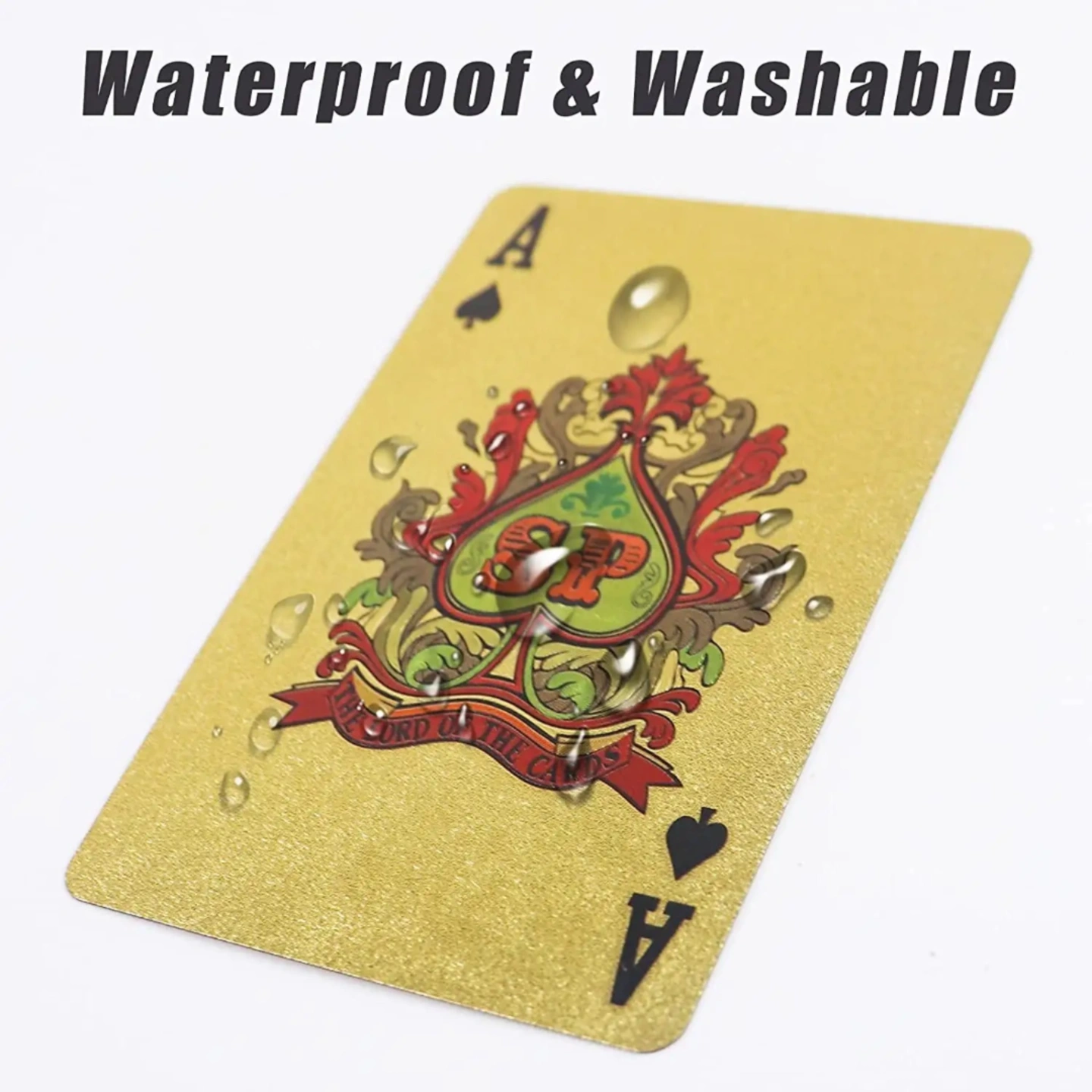Bring luxury and style to your game nights with the 24K Gold Foil Waterproof Playing Cards. Made with premium-quality plastic and gold foil plating, these cards are durable, flexible, and fully waterproof, ensuring long-lasting shine and smooth handling. Each card features a stunning dollar-pattern design, making it a standout gift for poker lovers, collectors, and friends. Perfect for poker nights, parties, or as a unique decorative piece.