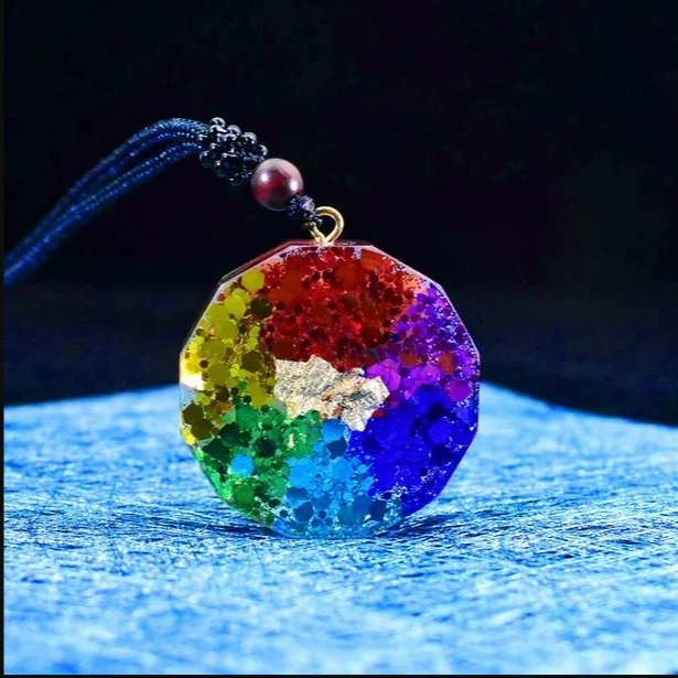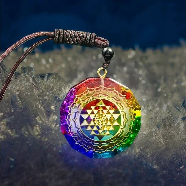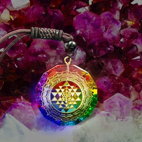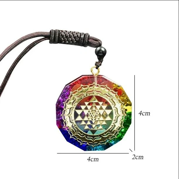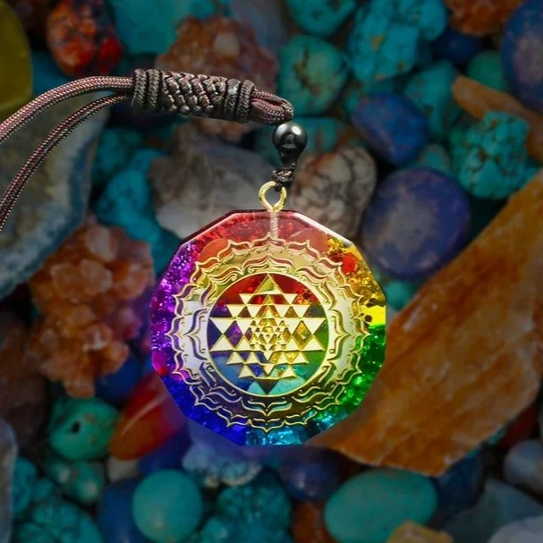 Unlock your inner energy with this stunning Seven Natural Crystal Chakras Pendant. Designed with vibrant rainbow hues and embedded with the sacred Sri Yantra symbol, this pendant is more than just a beautiful accessory—it's a powerful spiritual tool. Each color represents one of the 7 chakras, helping to align and balance your energy centers. Handcrafted with care, this piece is perfect for meditation, healing, and personal empowerment.