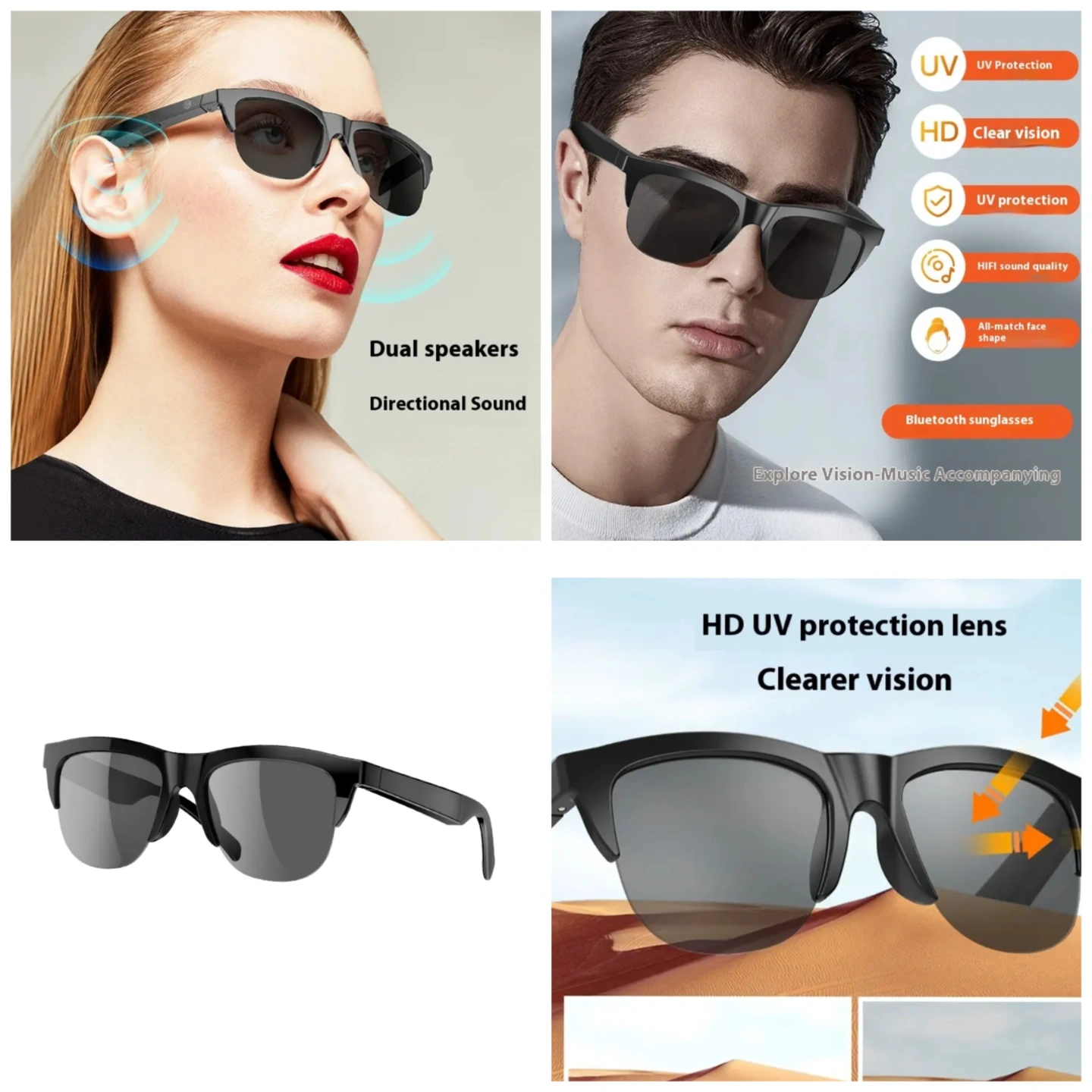 Experience a new level of convenience with these Smart Bluetooth Audio Sunglasses, designed for music lovers, commuters, and outdoor enthusiasts. Featuring built-in open-ear speakers, these sunglasses let you enjoy high-quality audio while staying aware of your surroundings—perfect for driving, cycling, running, or everyday wear.