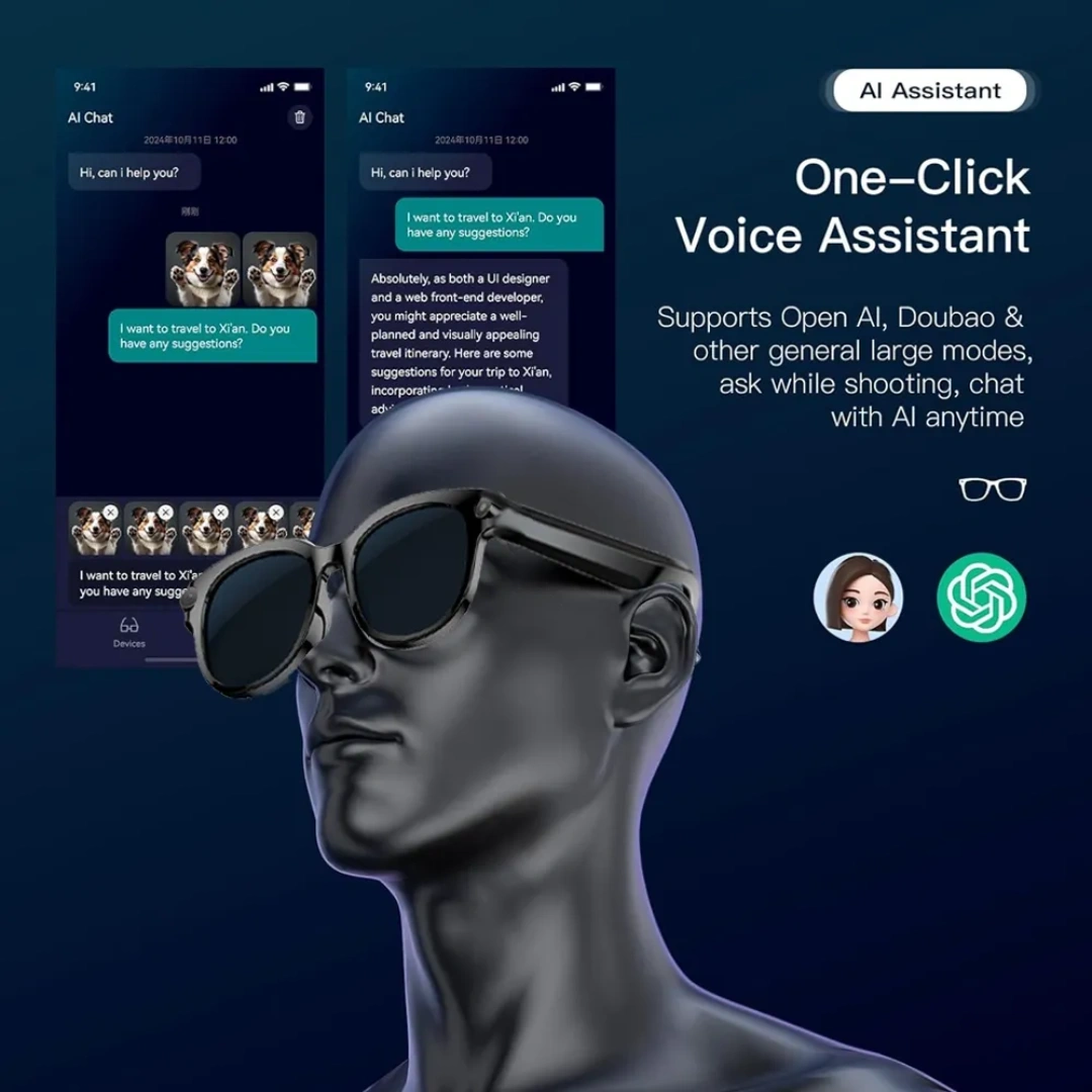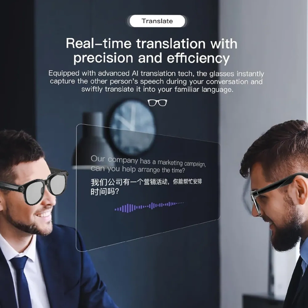 Equipped with WiFi 6 connectivity, these smart glasses allow fast data transfer and smart AI interaction. The 290mAh battery offers up to 1–3 days of standby usage and charges fully in about 1 hour via Type-C charging.