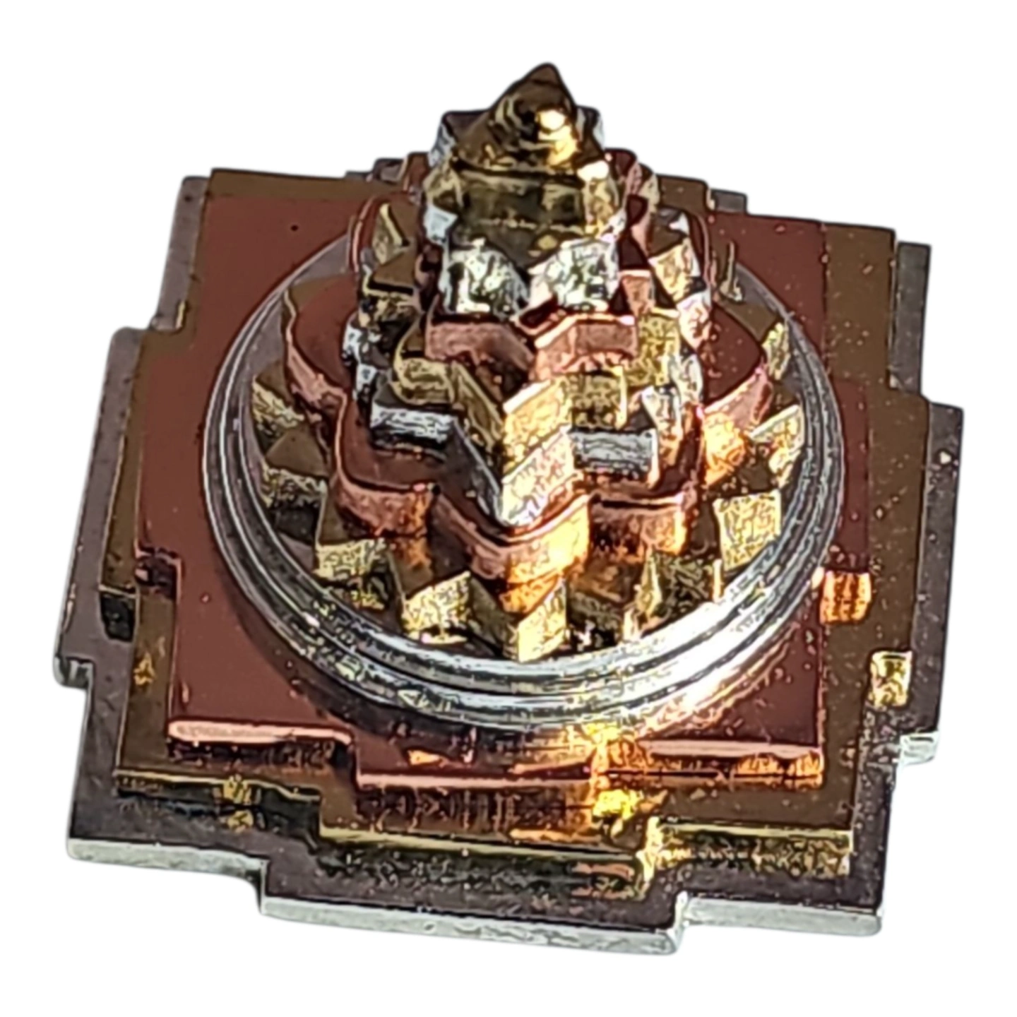 Bring divine energy, prosperity, and harmony into your space with this 3D Sri Yantra / Shri Meru Yantra, crafted in Ashtadhatu and Brass with your choice of Gold, Silver, or Copper tone. This sacred geometry symbol is a powerful tool for Vaastu Dosh Nivaran, spiritual awakening, and attracting wealth and inner peace. Ideal for your home, office, temple, or meditation space, the 2" x 2" size makes it compact yet spiritually potent.