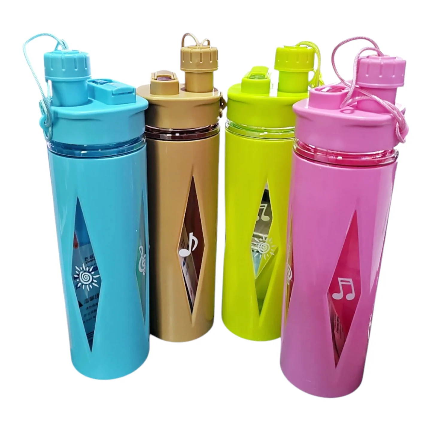 Stay hydrated in style with this eye-catching 580ml leakproof water bottle! Designed with a sleek diamond-shaped transparent window and unique music note graphics, it's perfect for school, gym, travel, or the office. Made from durable, BPA-free plastic, this bottle combines fashion with function. Available in four vibrant colors – Pink, Blue, Green, and Brown – to match your personality.