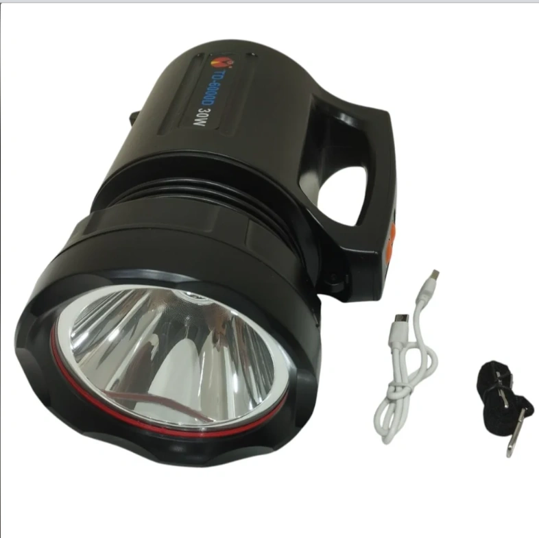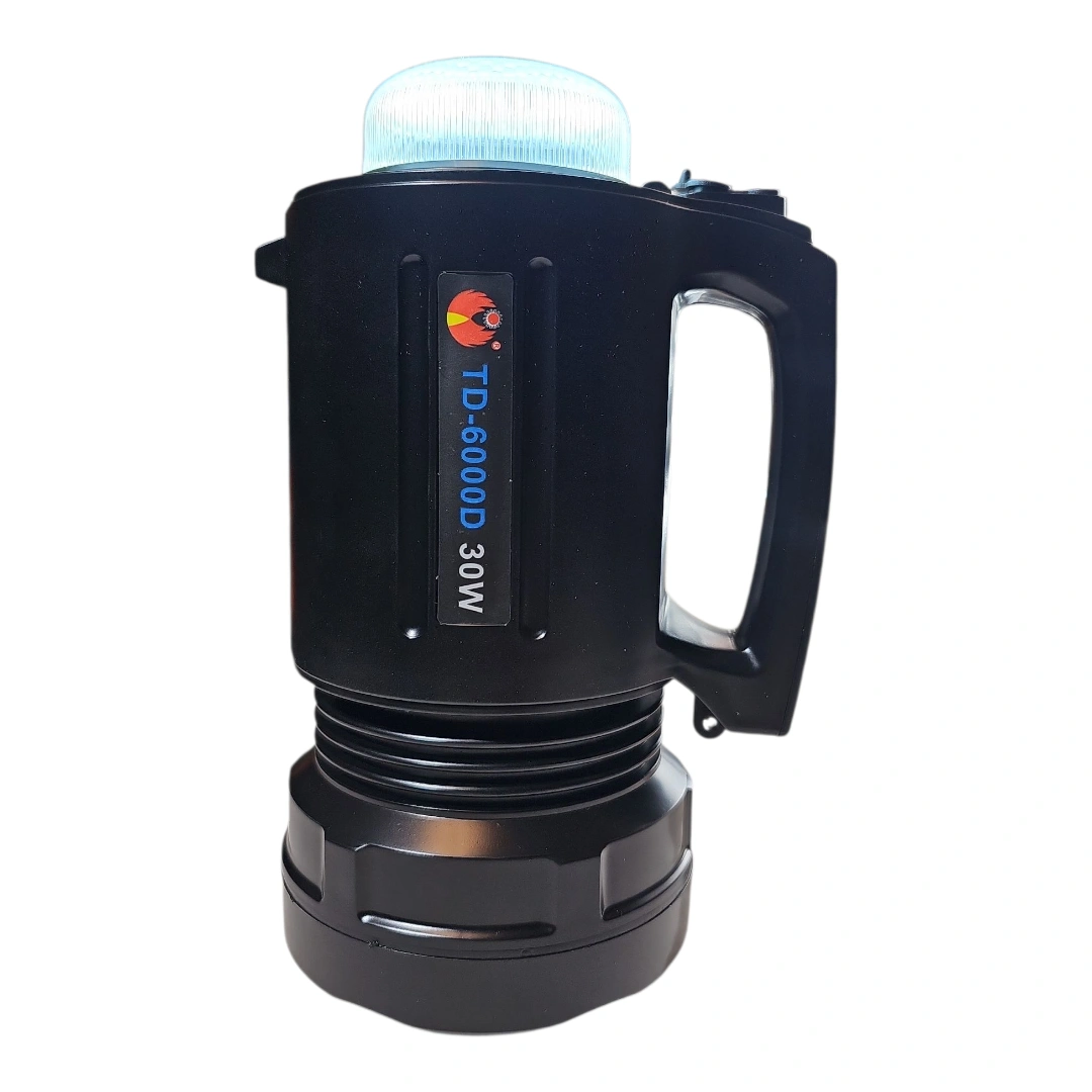 Experience powerful illumination with the TD-6000D 30W LED Rechargeable Flashlight, perfect for outdoor adventures, emergency use, and security needs. Built with durable, shockproof ABS plastic, this flashlight features advanced microelectronics control and delivers a real 30W output using a high-performance T6 LED.