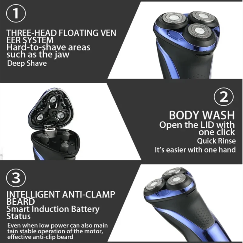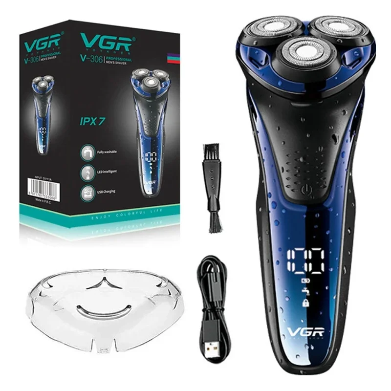 SKU: V-306 Premium Cordless Rechargeable IPX7 Fully Waterproof 3 Head Electric Shaver Wet & Dry Rotary Shavers