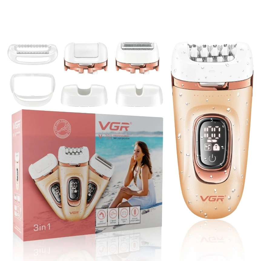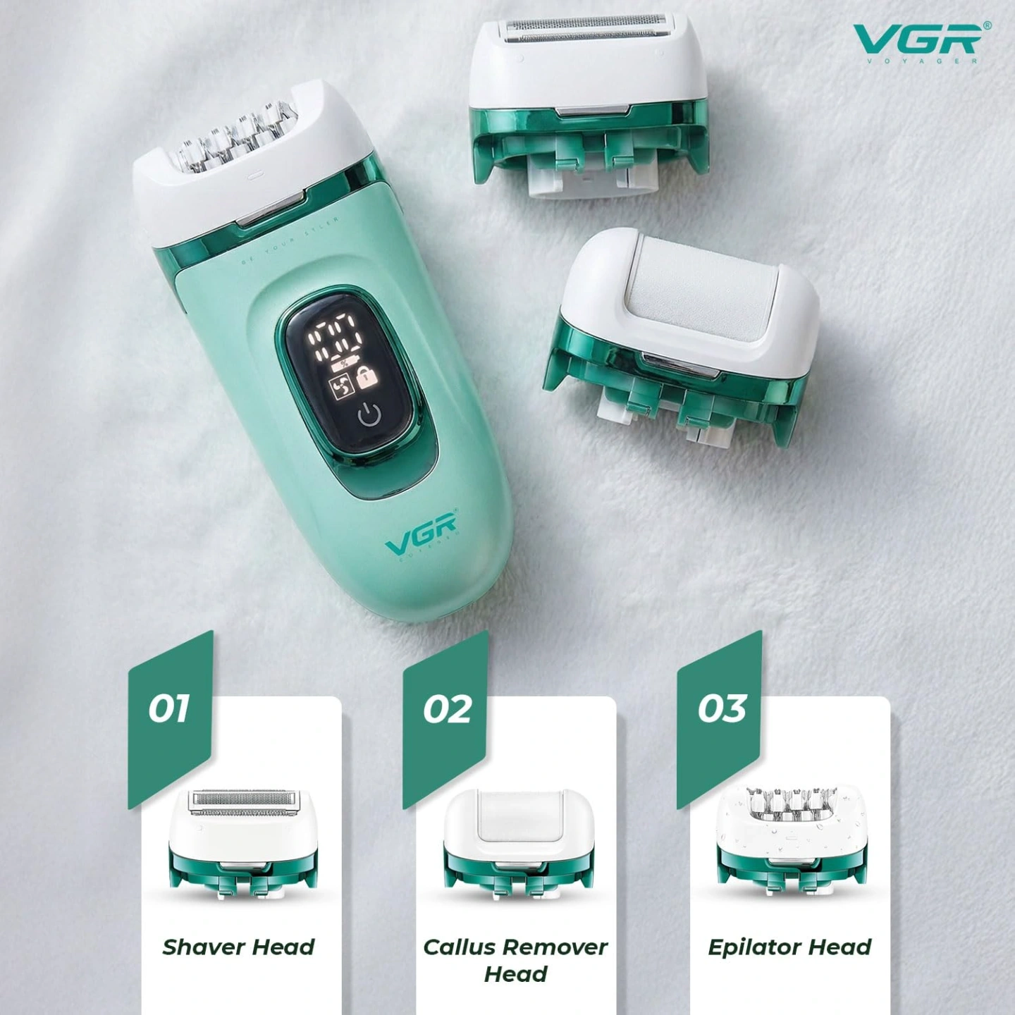 Achieve salon-like smooth skin at home with the VGR V-762 Professional 3-in-1 Epilator. Designed for modern grooming needs, this multifunction beauty device combines an epilator, foil shaver, and callus remover in one compact cordless tool. Its precision epilation system removes even fine, short hairs from the root for long-lasting smoothness, while the powerful motor ensures effective yet comfortable performance.