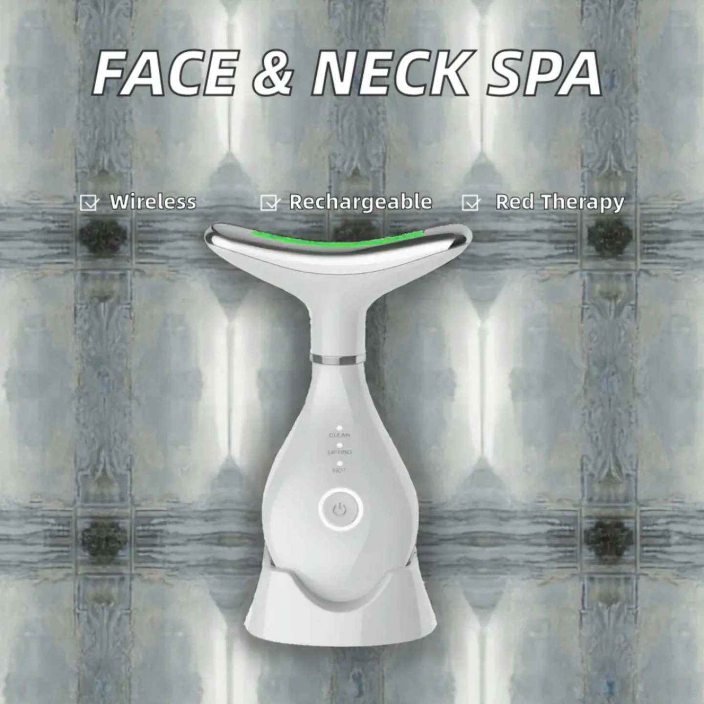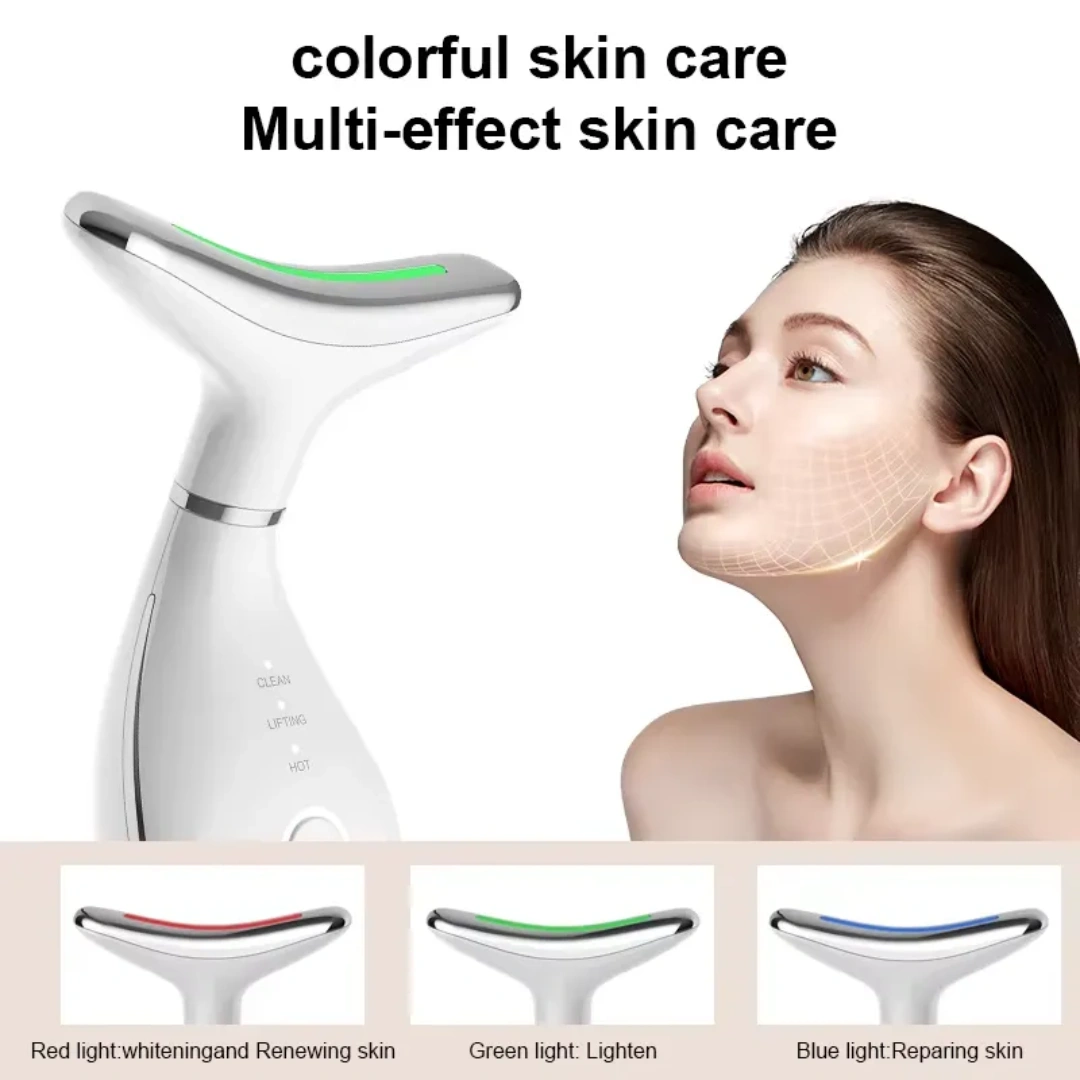 Experience professional-level skincare from home with this Wireless IPL Facial Massager & Neck/Shoulder Therapy Tool. Designed with three intelligent modes—Clean & Brightening (Blue Light), Lifting & Tightening (Green Light + EMS), and Warm Moisturizing (Red Light + EMS + Heat)—this device helps rejuvenate your skin and improve elasticity.