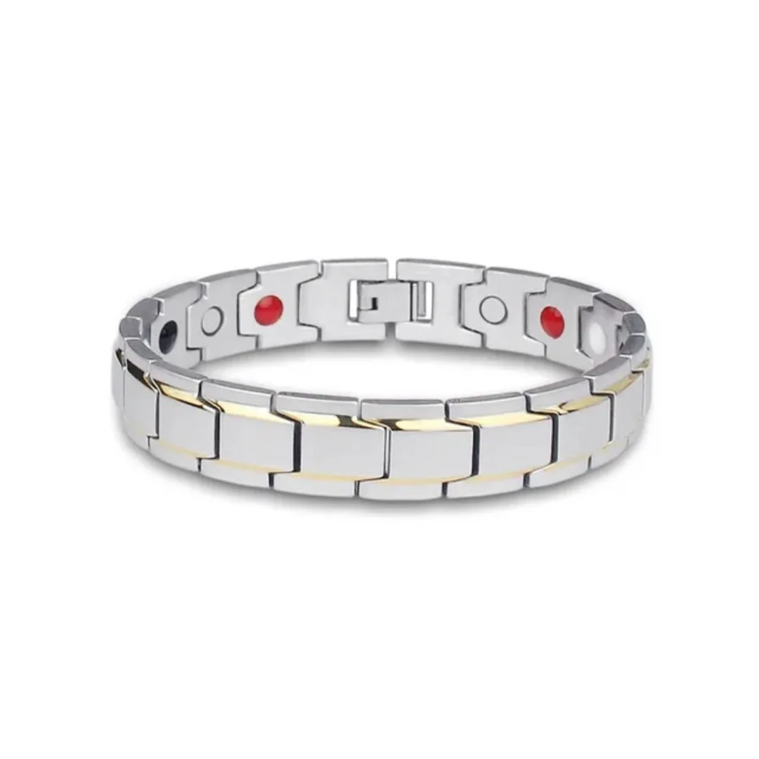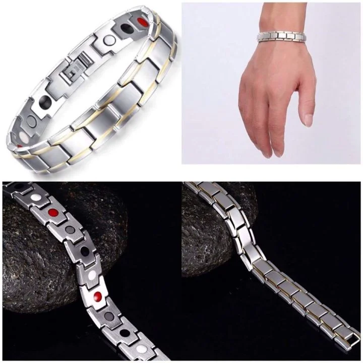 यो स्टाइलिश 4 in 1 सिल्भर बायो-चुम्बकीय ब्रासलेट उच्च गुणस्तरको सामग्रीबाट बनेको छ, जसले आरामदायी अनुभव प्रदान गर्दछ। यसको बायो-चुम्बकीय प्रविधिले रक्तसञ्चार सुधार गर्न, ऊर्जा वृद्धि गर्न र शरीरलाई सन्तुलित राख्न मद्दत गर्छ। आकर्षक डिजाइनसहित, यो ब्रासलेट स्वास्थ्य र फेसन दुवैका लागि उत्तम छनोट हो।